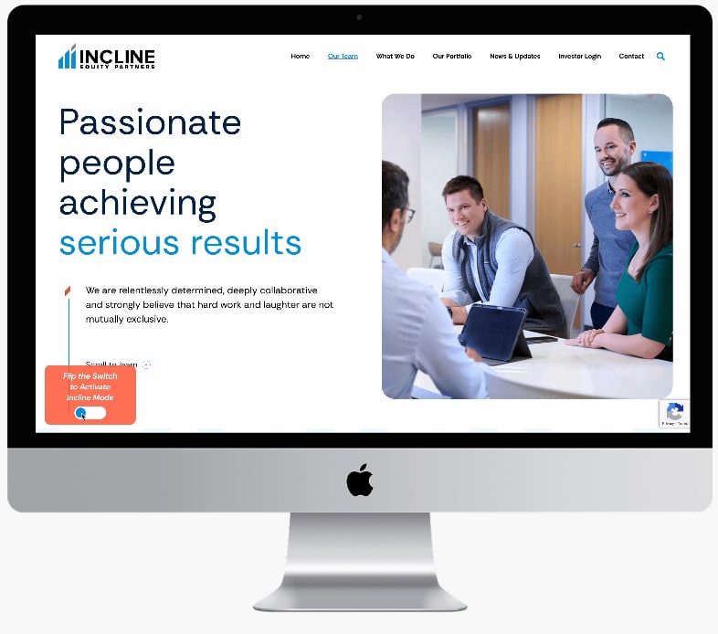 Incline Equity Partners is a leading player in middle market private equity, who approached us with a need to revitalize their brand. They recognized that their existing brand identity, messaging, and website were outdated, lacked personality, and did not feel distinguished enough in a crowded marketspace. The objective was to position them as a people-first, authentic, and forward-thinking brand, reflecting their values and the evolution of their business, while also showing off more of their quirky personality on their team page.